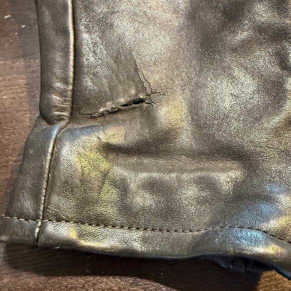 VINTAGE Leather Motorcycle Jacket Black Size 46 Tall Padded Vented Elbow Pads