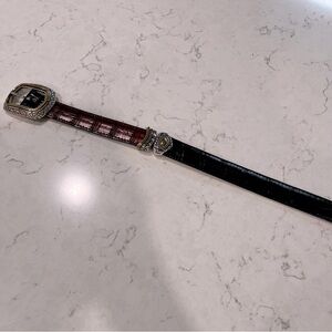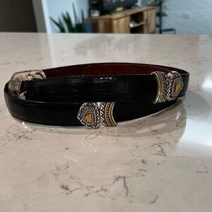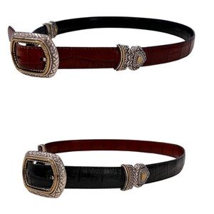 VINTAGE Leather Reversible Croc Embossed Belt Gold & Silver Accents Size M/32
