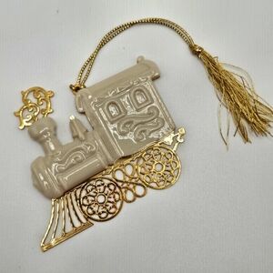 Vintage Lenox train engine holiday ornament. Porcelain with gold details. Gold hanging ribbon with tassel. Dated 1994. Comes with original storage box. Excellent conditon and smoke-free home.