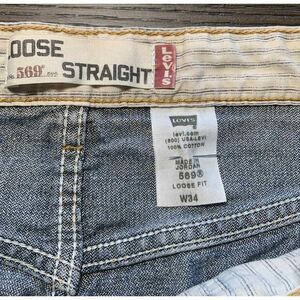 VINTAGE Levis 569 Loose fit Shorts 34 Light Wash Straight Denim Red Tab Y2K