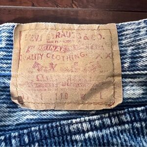 Striped vtg denim, high waist with a straight silhouette. Great pre-owned condition.