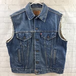 VINTAGE Levis Vest Mens XL Cut Off Denim Trucker 80s-90s USA Harley Davidson