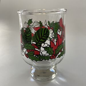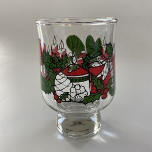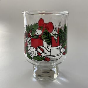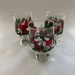 VINTAGE Libbey Christmas Glasses Ribbons and Holly Set of 3 Footed Desert Cups