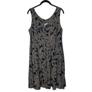 Vintage 90's Liberty House / Young Hawaii Wild Palms Leaf Floral Print Mini Dress Woman's Size Medium blue tan button down sleeveless shirt/tank dress