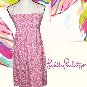 VINTAGE Lilly Pulitzer Dot Halter Summer Dress Small Orange Pink Cotton EUC