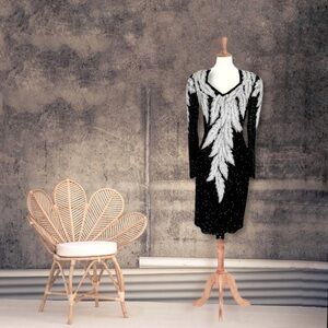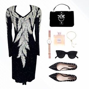 vtg 80s 90s Lillie Rubin Heavy Sequin Silk Evening Dress