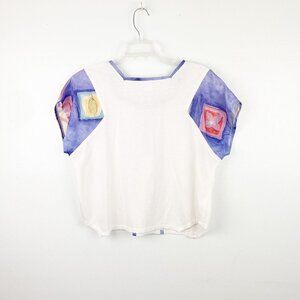 VINTAGE Lily's Retro White Printed Top Large Colorful 80s