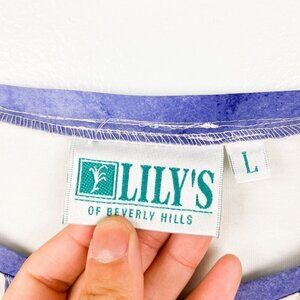 🦋 VINTAGE Lily's Retro White Printed Top Large Colorful 80s Casual Large