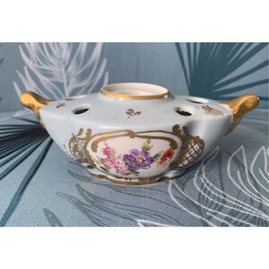 VINTAGE Limoges Hand Painted gold floral Inkwell & Pen Holder NO LID