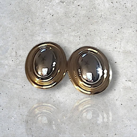 Clip-On, elegant oval earrings with a gold and silver finish. Perfect for any occasion.