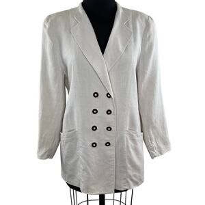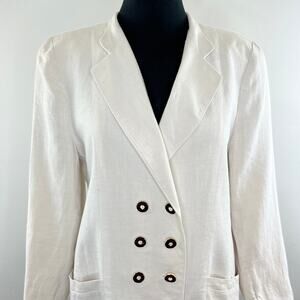 VINTAGE Lodenfrey White Linen Double Breasted Classic Blazer Jacket Women's 38 L