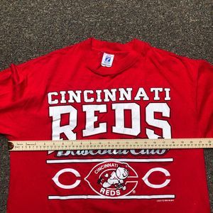 VINTAGE Logo 7 Cincinnati Reds Shirt Adult Large Short Sleeve Red 1990