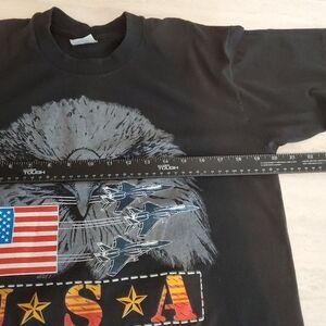 Vintage Logo 7 Tshirt Mens Large Black Cotton Single Stitch Eagle USA Flag