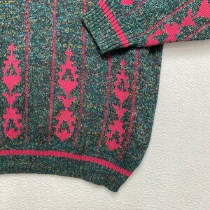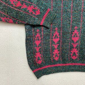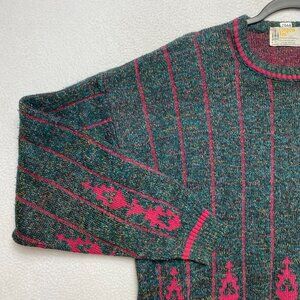 VINTAGE London Fog Sweater Mens L Gray Red Geometric Pullover Crew Neck 90s