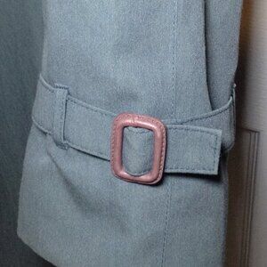 VINTAGE London Fog Trench Coat, "P8" Trending, Thinsulate, Collegiate, Quiet Lux. Grayish Blue; Raincoat/.Trench, Removable shoulder pads, Double Breasted, Belted, Lining zips out for more of a lightweight coat. Shoulders: 20", Pit-pit: 22", Length: 44" from shoulder, Waist: 23". VINTAGE and Gently pre-loved. These Trench Coats are Trending for Spring and Summer.