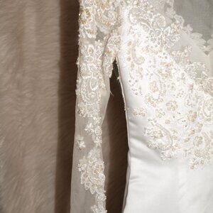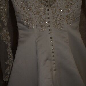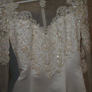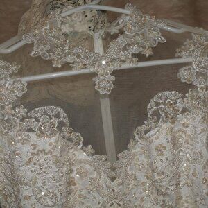 VINTAGE Long Pink GOWN VERY Long Train Size 10W BT VENUS VERY EMBELLISHED USED FOR PHOTO SHOOTS Smal Mark on bottom of train Shown in photos upgraded from original white to pastel pink