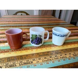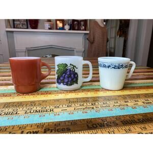 VINTAGE Lot Of 3 PYREX Coffee Mug Glasbake Fire King Milk Glass MCM
