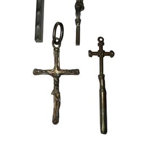 This is a beautiful and authentic collection of five (5) vintage metal crucifixes and corpus pendants, perfect for collectors, jewelry making, rosary repair, or religious display. These pieces were sourced from a local antique/vintage store and exhibit wonderful age and patina.
