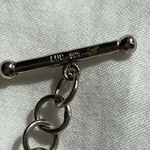 It measures approximately 8 inches long. Adjustable two-ring toggle clasp (7 inch).