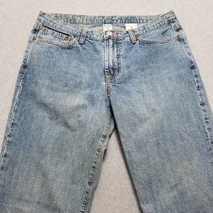 VINTAGE Lucky Brand Jeans Womens 14 Blue Denim Flared Dungarees 33x31 Made USA