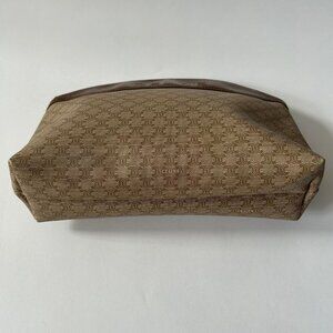 CELINE Macadam PVC Leather Pouch Clutch Bag Beige Brown Purse Vintage.