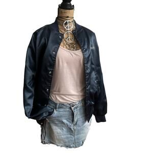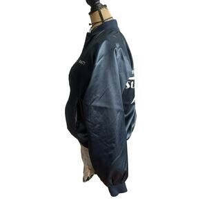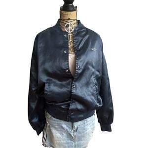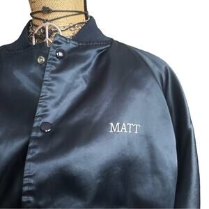 VINTAGE MADE IN USA - 80s NEMESIS SPORTSWEAR men's Satin BLUE bomber jacket MED