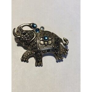 VINTAGE MARCASITE CRYSTAL LUCITE GOOD LUCK ELEPHANT PIN BROOCH~SIGNED: FAF