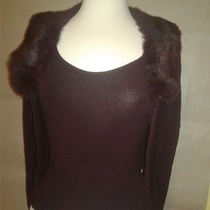 MAROON SWEATER TANK TOP, MATCHING BUTTON UP LONG SLEEVE CARDIGAN AND DETACHABLE FUR COLLAR!!