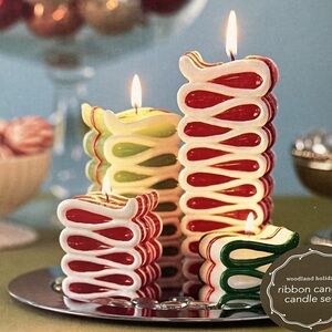 VINTAGE MARTHA STEWART RIBBON CANDY PILLAR CANDLES IN ORIGINAL BOX