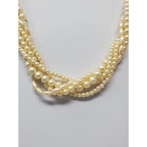 VINTAGE MARVELLA IVORY FAUX PEARL 4 STRAND TWIST NECKLACE FASHION JEWELRY