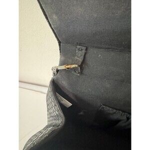 What a beautiful bag! Designer Mary Frances vintage shoulder bag with black and antique silver butterfly motif in front of vegan leather and patent leather bag. Snap flap front. Shoulder strap in black beading with silver intertwined. Has a hang tag. It shows no signs of wear-besides minimal amount of dust on side because of age, there is a small white dot in front of patent and small indentation and inside metal strap has some corrosion. Please see pics.