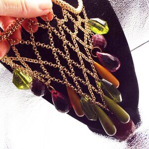 VINTAGE MASSIVE COLORFUL LUCITE SHAPES "CARMEN MIRANDA FRUIT" BIB NECKLACE 24