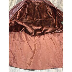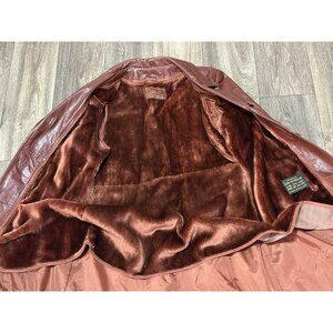VINTAGE MAXI LEATHER JACKET BEALTED TRENCH COAT BROWN WOMENS SIZE 12