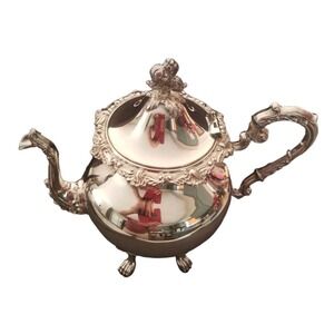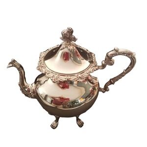 VINTAGE MC Tea Pot Silver On Copper Footed Floral Finial Gorgeous