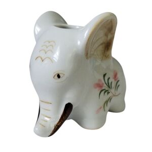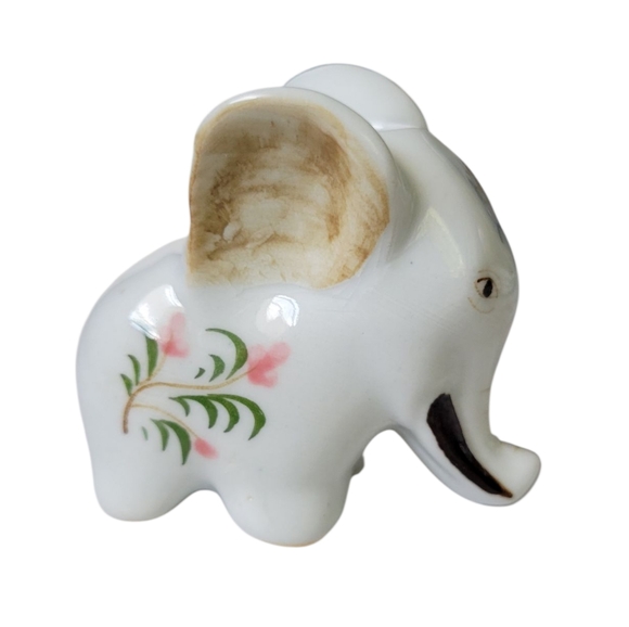 Charming ceramic elephant figurine with pink and green floral accents. Perfect for decor or gifting.