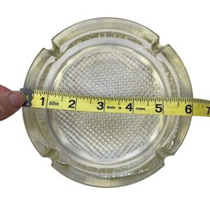 VINTAGE MCM Glass Ashtray 4 Dip Round Circle Heavy Tinted Pebbled Bottom