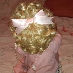 RARE FIND, GORGEOUS VINTAGE "MEMORIES OF CHILDHOOD", COLLECTION OF THE MASTERS, 18" MARY DOLL W/ STOOL BY RICHARD SIMMONS. PICTURE PERFECT WITH BABY DOLL. IN GREAT CONDITION! BEAUTIFUL! (MOTHERS DAY)