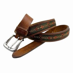 VINTAGE MENS BRIGHTON WESTERN LEATHER BELT SOUTHWEST FABRIC BUFFALO NICKEL SZ 36
