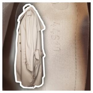 VINTAGE MENS PUTTY COLORED DOUBLE BREASTED LONDON FOG UNLINED TRENCH COAT W/ BELT THINSULATE