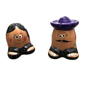 This Vintage Mexican Couple Hand Painted Clay Salt & Pepper Shaker set adds a charming touch to your dining table. Crafted with intricate details, it reflects the rich Mexican culture.