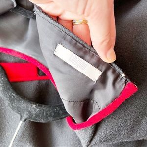 Features: best guess 60s / 70s era. RARE designer dress. Black long sleeve with beautiful pleating on wrists. Zipper wrist. Red piping on neck. Red pocket details on front and back.
