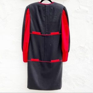 VINTAGE MICHAEL NOVARESE Black and Red Wool Long Sleeve Dress