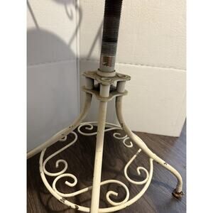 This chair has some minor damage such as around the bottom of the legs. And small discoloration on the middle of the top. Also the ruffle balls do slide down so may want to use fabric glue on it if being used to sit. Be perfect photo op chair as it is very sturdy and still spins. Otherwise in good vintage condition