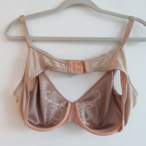 VINTAGE MINIMZER BY LILYETTE Satin Embroidered Bra in Nude Beige - Size 36B
