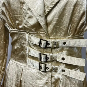 Minuet Vintage retro trench jacket coat. Buckle Belt style waist closure. 100% Polyamide Material. Beige Gold color Shimmer color. Excellent condition
