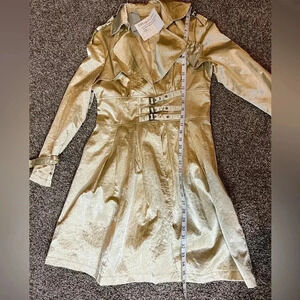 VINTAGE MINUET TRENCHCOAT JACKET GOLD MID KNEE LENGTH CINCHED WAIST NWT LARGE
