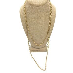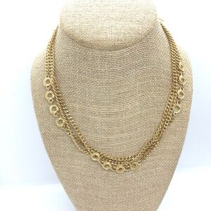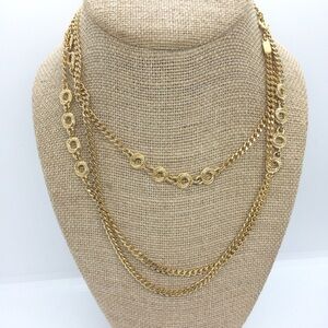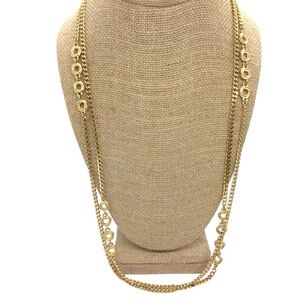 VINTAGE MONET GOLD TONE CHAIN LINK NECKLACE 27" LONG CIRCLE STATIONS LUXURIOUS