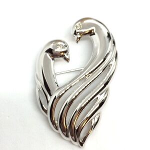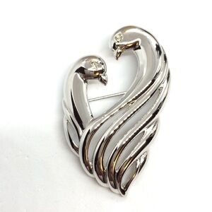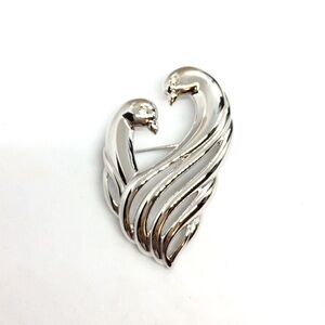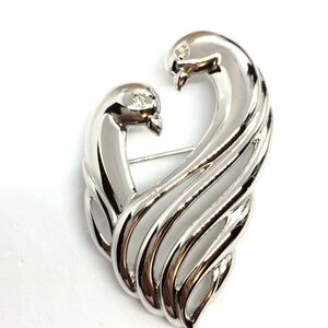 Beautiful VINTAGE MONET TURTLE DOVES HEART BROOCH SILVER TONE BIRDS. Shiny silver tone metal. Signed Monet. Measures approximately: 1.25" w x 2.25" h. Great condition. Would make a great Mother's Day present!