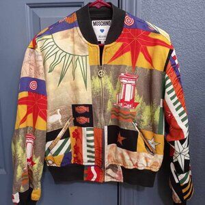 SUPER COOL VINTAGE MOSCHINO MUTI PATTER BOBMER JACKET IN NEAR BRAND NEW CONDITION. MADE IN ITALY.