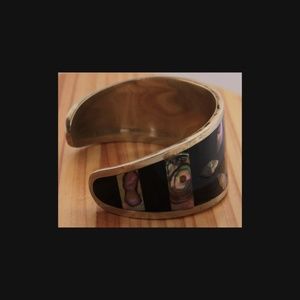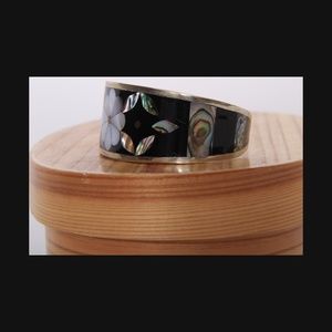 VINTAGE MOTHER OF PEARL INLAY ALPACA BANGLE